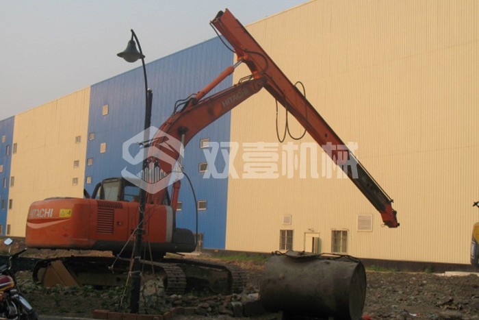 兩節(jié)伸縮臂是雙壹機械2005年自主研發(fā)的突破性產(chǎn)品,被多家同行模仿制造,從未被超越;臂長度19米,采用高噸位的三機聯(lián)動折彎設(shè)備折成U型,雙U型對接的焊接方式。