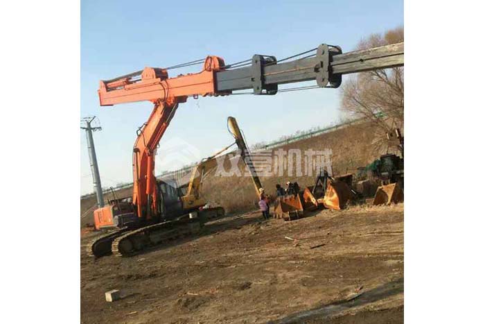 超長四節臂:總長度可達48米,臂內可再伸出3節,施工深度42.5米,配帶貝殼斗1.8立方或挖掘斗1.0立方。