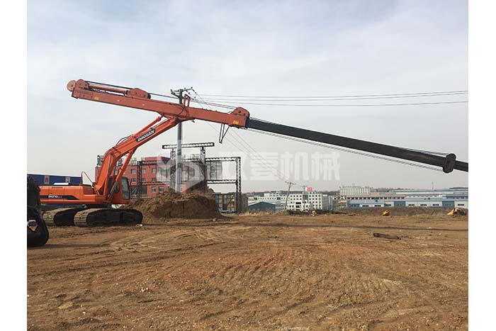 超長四節臂:總長度可達48米,臂內可再伸出3節,施工深度42.5米,配帶貝殼斗1.8立方或挖掘斗1.0立方。